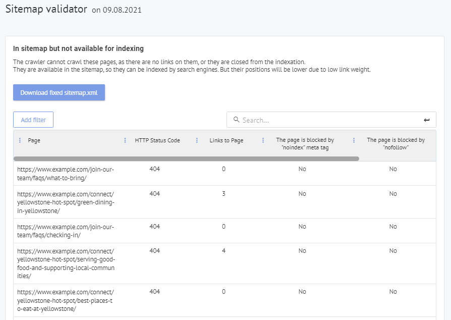 आप Labrika का अपना साइटमैप वैलिडेटर टूल भी उपयोग कर सकते हैं, जो आपको उन पेजों तक पहुंच देता है जो आपकी साइट पर हो सकते हैं लेकिन इंडेक्सेबल नहीं हैं। यह ऑर्फन पेज की सूची जल्दी और आसानी से प्राप्त करने का एक आसान तरीका है!